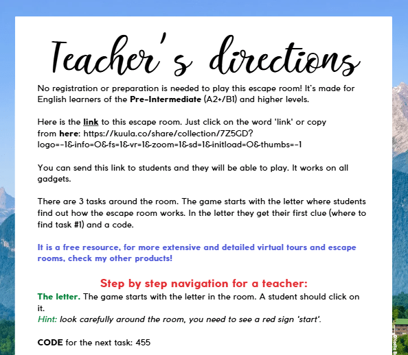 All my escape rooms include a pdf document with answers and an active hyperlink to the game. To understand its practicality, I recommend trying one of my free escape rooms. You can start with this one for Conditionals.